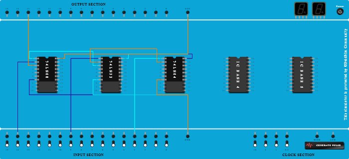 - Connect Pin-2 (Input) of ICBase-2 (74LS32) to Pin-2 (Output) of ICBase-3 (74LS04).