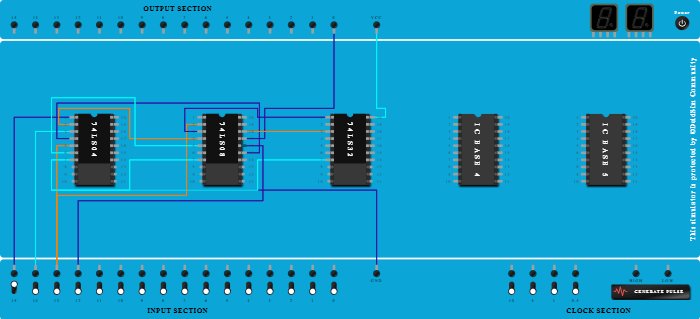 - Connect Pin-3 (Output) of ICBase-3 (74LS32) to Pin-18 (Input) of ICBase-2 (74LS08).
