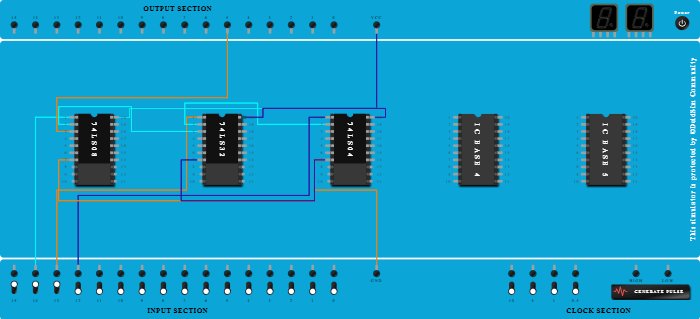 - Connect Pin-2 (Output) of ICBase-3 (74LS04) to Pin-2 (Input) of ICBase-2 (74LS32).