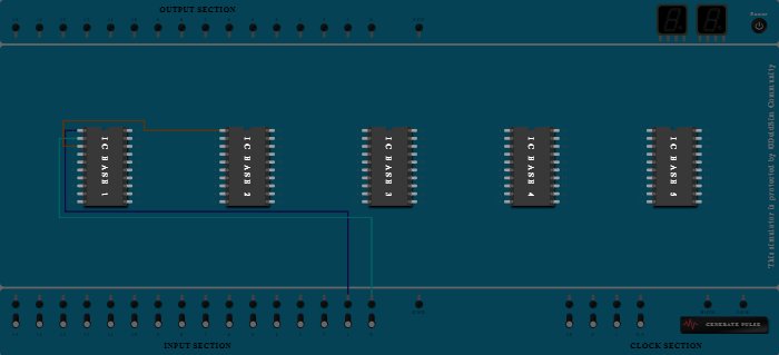 Procedure Connect Input-1 to Pin-1 (Input & Output) of ICBase-1.Connect Input-0 to Pin-2 (Input & Output) of ICBase-1.Connect Pin-1 (Input & Output) of ICBase-2 to Pin-3 (Input & Output) of ICBase-1.