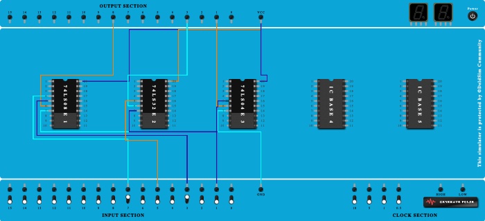 - Connect Output-3 to Pin-6 (Output) of ICBase-2 (74LS32).