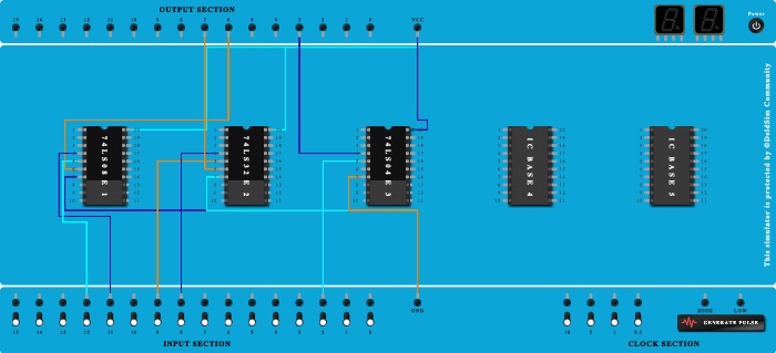 - Connect Output-7 to Pin-6 (Output) of ICBase-1 (74LS08).