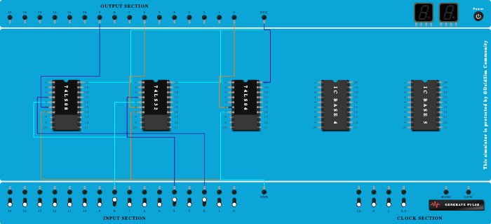 - Connect Input-8 to Pin-5 (Input) of ICBase-2 (74LS32).