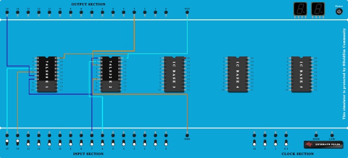 - Connect Input-7 to Pin-1 (Input) of ICBase-2 (74LS32).