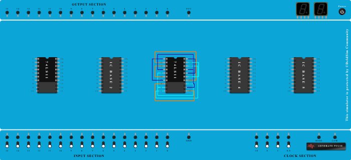- Connect Pin-2 (Input) of ICBase-3 (74LS11) to Pin-14 (Output) of ICBase-3 (74LS11).