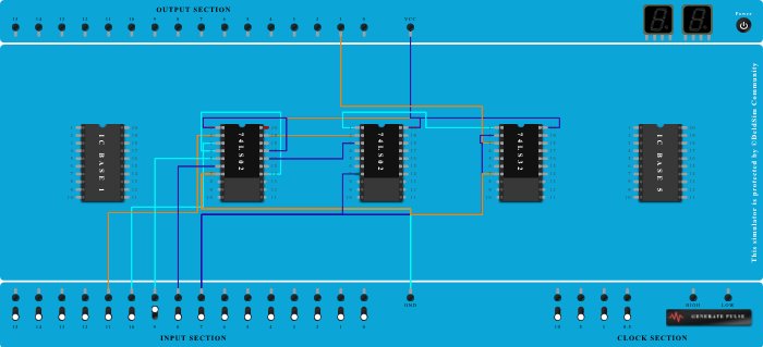- Connect Input-7 to Pin-2 (Input) of ICBase-4 (74LS32).