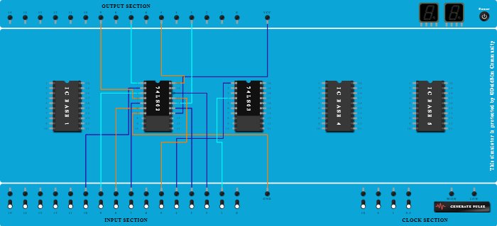 - Connect Input-7 to Pin-5 (Input) of ICBase-2 (74LS02).