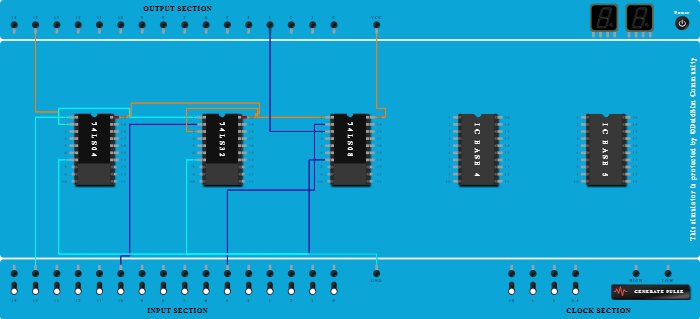 - Connect Pin-1 (Input) of ICBase-3 (74LS08) to Pin-3 (Output) of ICBase-2 (74LS32).