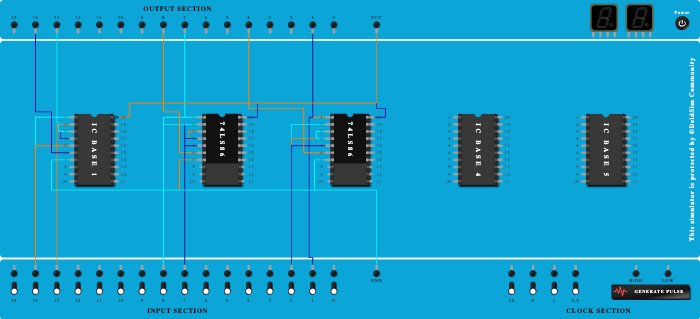 - Connect Output-4 to Pin-6 (Output) of ICBase-3 (74LS86).