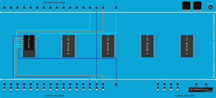 - Connect Output-0 to Pin-3 (Output) of ICBase-1 (74LS86).
