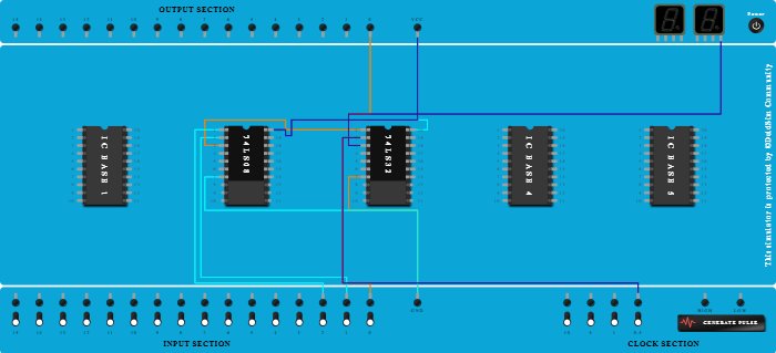 - Connect Seven segment display 1 to Pin-3 (Output) of ICBase-3 (74LS32).