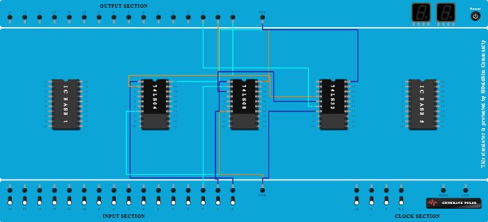 - Connect Pin-4 (Input) of ICBase-4 (74LS32) to Pin-2 (Output) of ICBase-2 (74LS04).