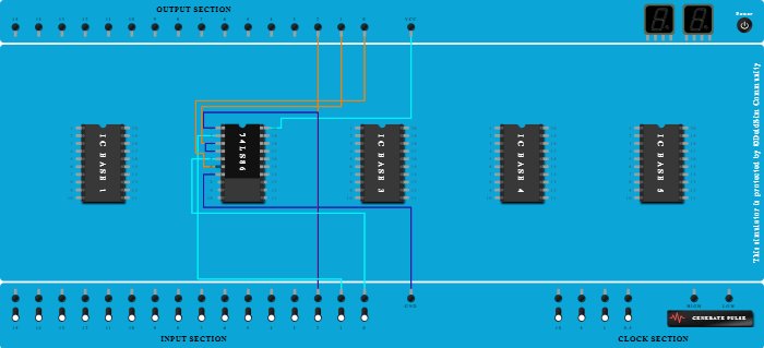 - Connect Output-0 to Pin-6 (Output) of ICBase-2 (74LS86).