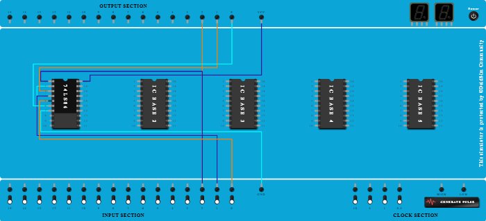 - Connect Output-0 to Pin-6 (Output) of ICBase-1 (74LS86).