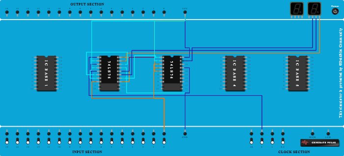 - Connect Pin-18 (Output) of ICBase-2 (74LS76) to Pin-6 (Input) of ICBase-2 (74LS76).