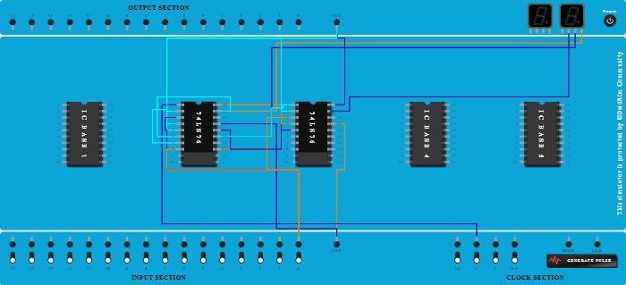 - Connect Pin-6 (Input) of ICBase-2 (74LS76) to Pin-19 (Output) of ICBase-2 (74LS76).
