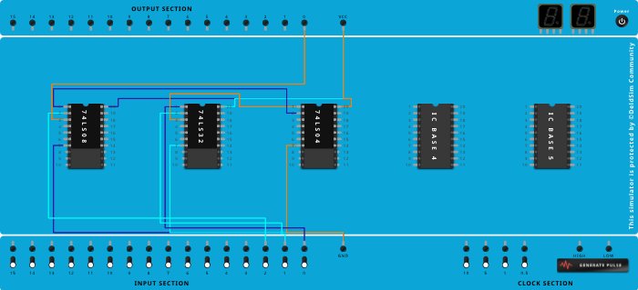 - Connect Pin-1 (Input) of ICBase-3 (74LS04) to Pin-3 (Output) of ICBase-2 (74LS32).