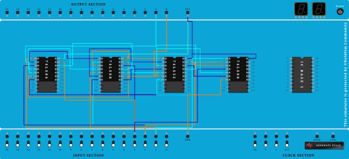 - Connect Output-0 to Pin-6 (Output) of ICBase-3 (74LS32).