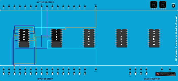 - Connect Pin-19 (Input) of ICBase-1 (74LS00) to Pin-14 (Output) of ICBase-1 (74LS00).