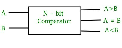 A comparator used to compare two bits is called a single bit comparator. It consists of two inputs each for two single-bit numbers and three outputs to generate less than, equal to and greater than between two binary numbers